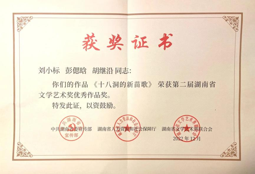 据了解,湖南省文学艺术奖是经湖南省委、省政府批准设置的全省文学艺术最高综合类奖项,2012年评选表彰了第一届,时隔10年再次评选表彰第二届。本次评选范围包括文学、戏剧、音乐、舞蹈、美术、书法、摄影、电影等文艺门类的优秀作品和德艺双馨的文艺工作者。经过作品申报、推荐、初评、终评等程序,此次全省共有2件作品获优秀作品特别奖、98件作品获优秀作品奖。