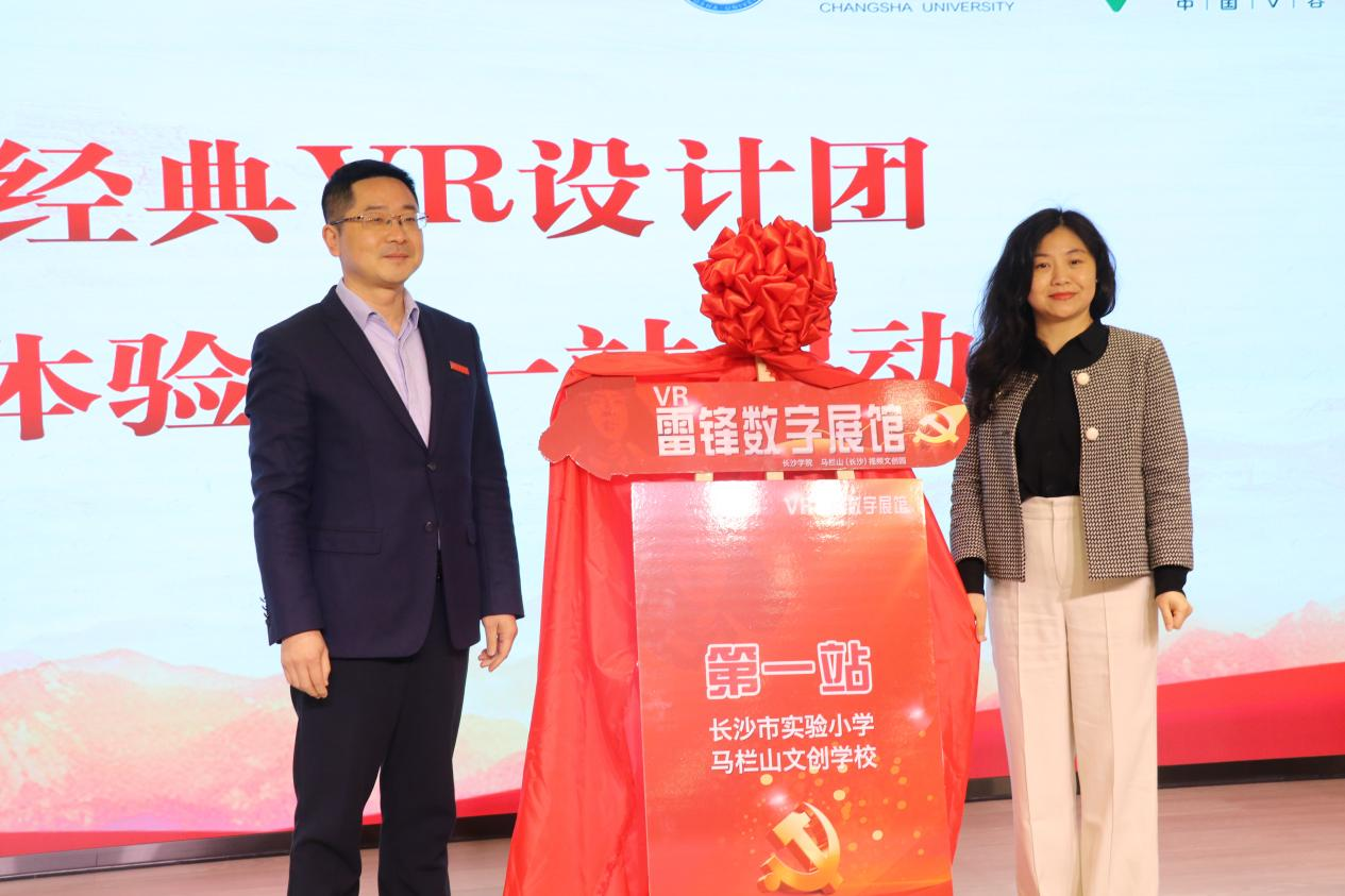 活动当天,艺术设计学院师生和湖南云上栏山数据服务有限公司还来到长沙市实验小学马栏山文创学校。近百名一年级的小学生分批戴上VR体验设备,在志愿者的指导下体验了VR雷锋数字展馆,沉浸式学习了解雷锋同志生平事迹。充满科技感的参观学习引发了小朋友们极大的好奇心,他们在参观中寻找雷锋日记,打卡学习标记,切身感受雷锋精神。