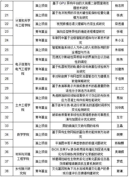 长沙学院2023年湖南省自然科学基金项目公示立项清单