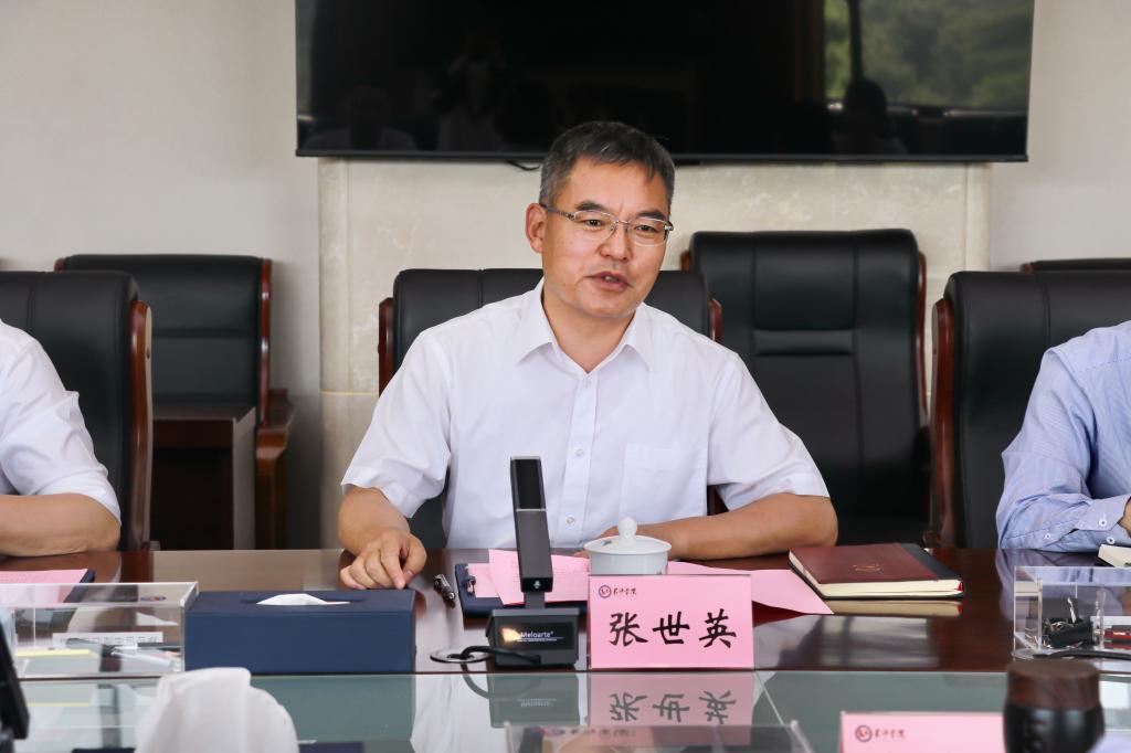 会上,张世英代表学校对廖志华一行来校交流表示欢迎,并简要介绍了学校的办学历程、学科建设等发展基本情况,同时希望百色学院和长沙学院加强沟通与交流,推动两校管理水平进一步提高。