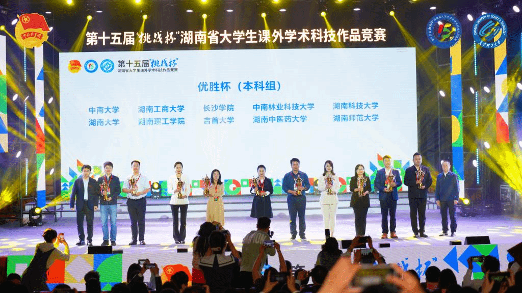 5月22日,由共青团湖南省委、省教育厅、省人力资源和社会保障厅、省科学技术协会共同主办的第十五届“挑战杯”湖南省大学生课外学术科技作品竞赛决赛在长沙理工大学落下帷幕。我校选送的10个参赛作品喜获一等奖2个、二等奖3个、三等奖5个,学校蝉联“优胜杯”荣誉称号。