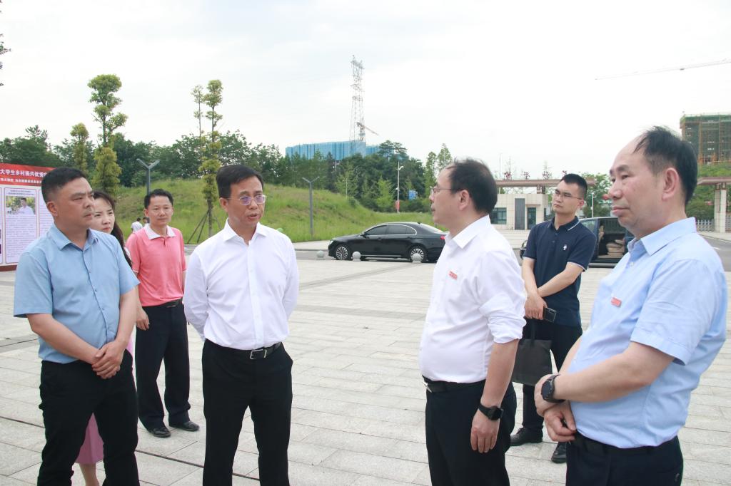 彭华松一行走访查看了敏学6号栋学生宿舍、敏学7号栋学生宿舍建设工地、经管类实训中心,现场听取了学校基本建设情况介绍,并详细了解学校校园整体规划及马栏山新媒体实训中心建设情况。