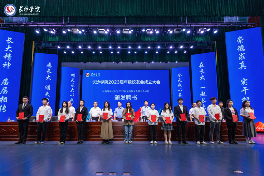 随后,党委副书记刘寒波宣读了《关于同意成立长沙学院2023届年级校友会的批复》。党委委员、副校长张世英宣读《关于聘任长沙学院2023届年级校友会理事会成员的决定》,决定聘任法学院谭颂等139名毕业生为2023届年级校友会理事会理事,经济与管理学院胡汉林等14名毕业生为2023届年级校友会理事会副秘书长,马栏山新媒体学院余城宏等12名毕业生为2023届年级校友会理事会副会长,生物与化学工程学院江梦琪为2023届年级校友会理事会秘书长,外国语学院邵杰为2023届年级校友会理事会常务副会长,土木工程学院潘志隆为2023届年级校友会理事会会长。