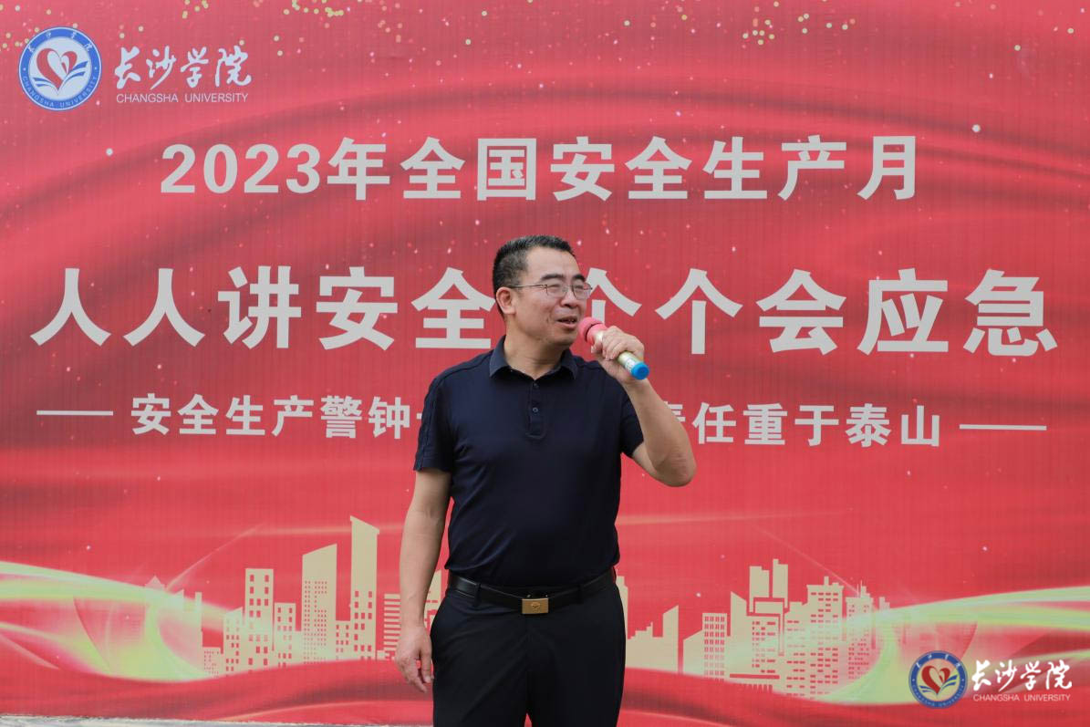 6月14日下午,我校组织开展了2023年全国安全生产月“人人讲安全,个个会应急”消防应急演练活动。活动由党委委员、副校长何利华主持。