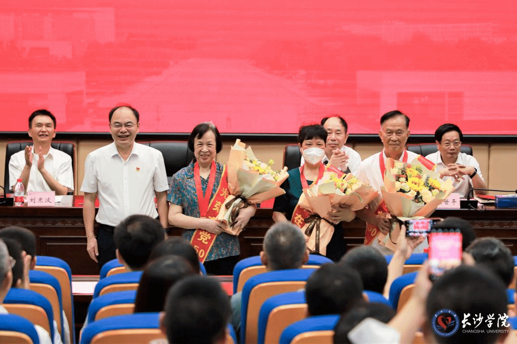 全体在校校领导、全体中层干部、师生党员代表、新增“光荣在党50年”的老党员代表参加大会。