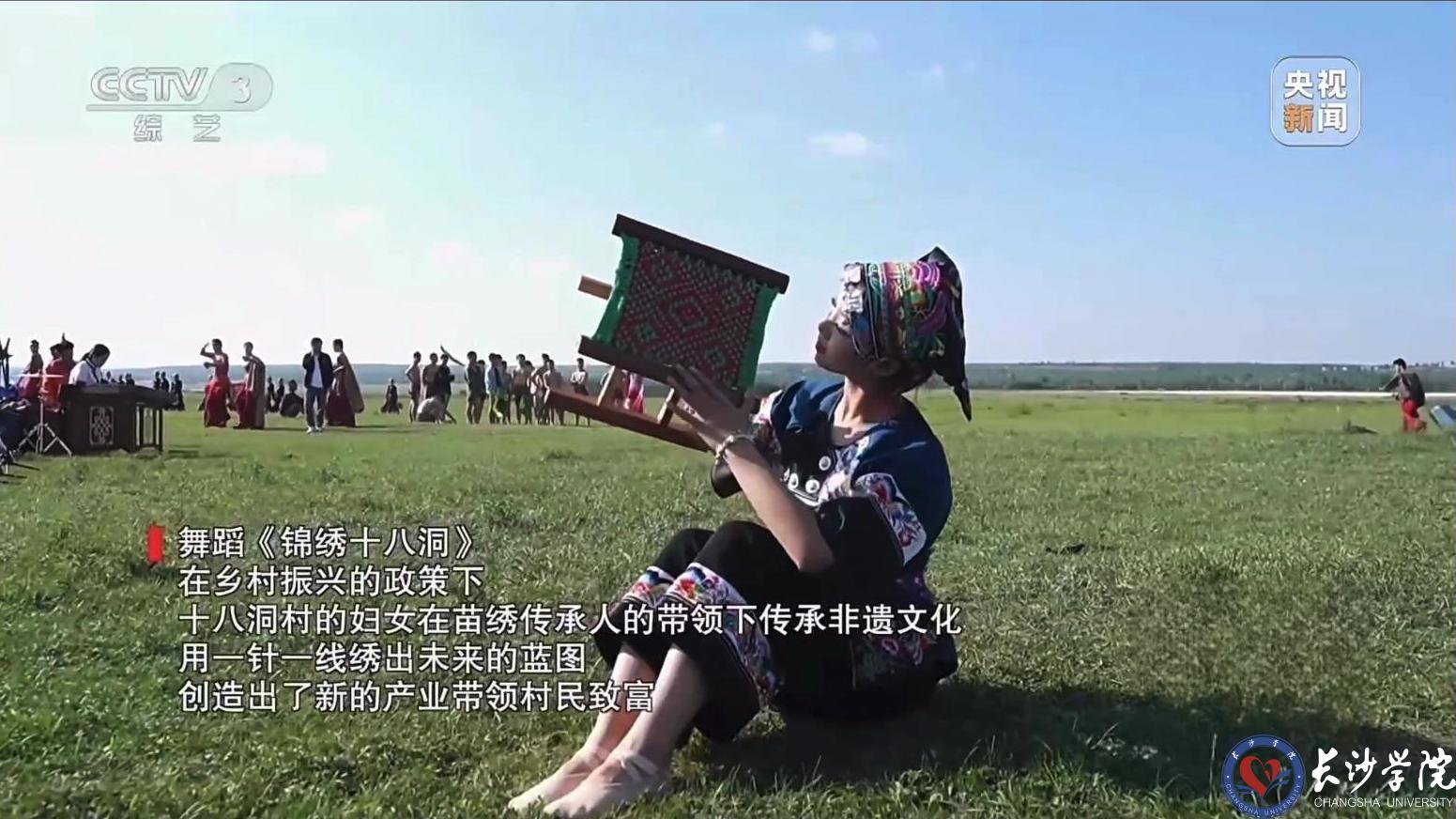 夏日的内蒙古草原,水草丰美,一群美丽的苗族姑娘翩翩起舞,向现场观众讲述着湖南省花垣县十八洞村的新故事……近日,我校原创舞蹈《锦绣十八洞》作为第十四届全国舞蹈展演作品亮相中央电视台综艺频道《文化十分》栏目,作品编导、我校音乐学院副院长刘小标接受了节目采访。