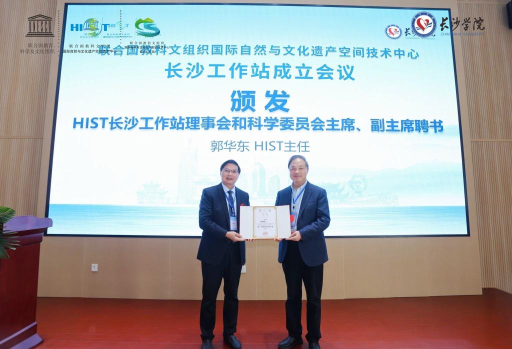 (郭华东院士为HIST长沙工作站理事会和科委会成员颁发聘书)