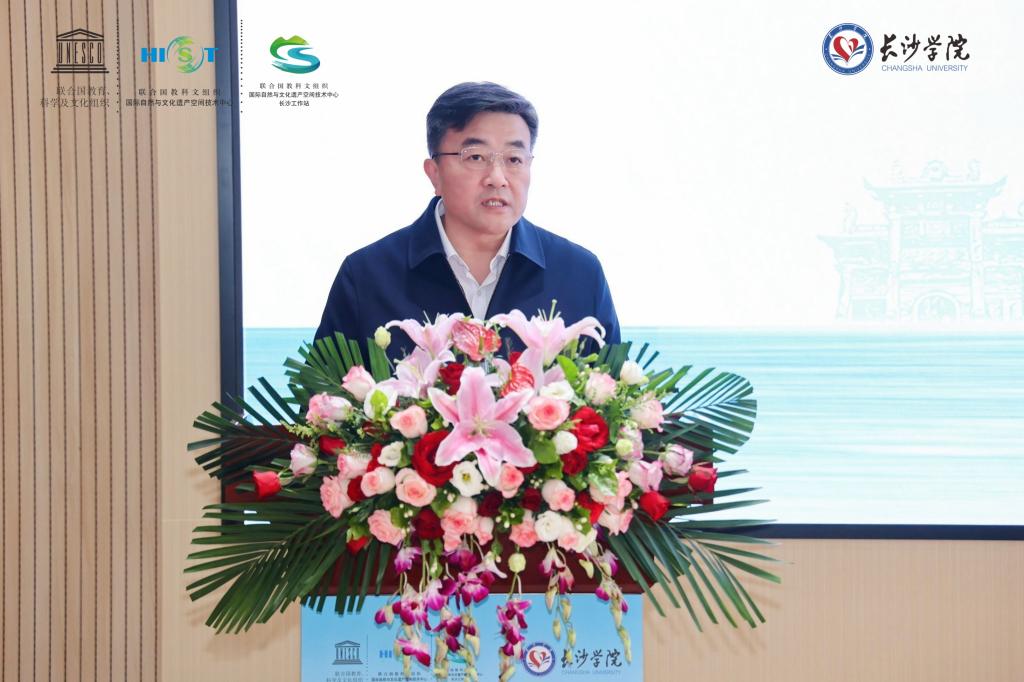 陈刚对长沙工作站的成立表示祝贺。他表示,近年来长沙学院在高质量人才培养、高水平科学研究、高效能成果转化等方面取得显著成绩,在数字赋能文化创意、文旅融合等领域形成鲜明特色。长沙愿意一如既往地做长沙学院和长沙工作站的坚定支持者,相信在联合国教科文组织国际自然与文化遗产空间技术中心的大力支持下,长沙市及长沙学院定会在文化遗产保护、文旅融合发展上取得更加灿烂的成绩,为长沙全力建设全球研发中心城市贡献力量。