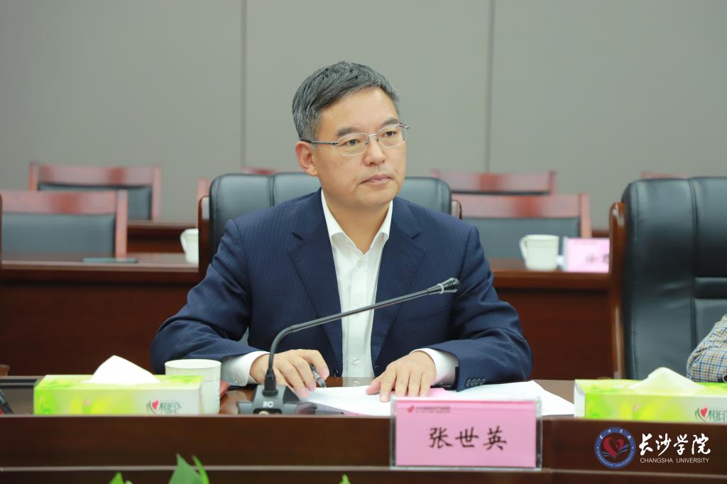 张世英对园区、企业长期以来对长沙学院的关心支持表达了感谢,并简要介绍了学校基本情况和科技成果转化情况。他表示,近些年宁乡高新区和长沙学院紧密合作、成效显著,良好的合作关系为今后的学校、园区、企业战略合作奠定了坚实基础。期待在下一阶段进一步整合双方创新优势资源,深入推进校企合作和人才流动,大力推动产学研融合,携手开创共赢发展新局面,更好推动行业和区域经济社会高质量发展,为全面落实“三高四新”美好蓝图、为长沙建设全球研发中心城市贡献新的更大力量。
