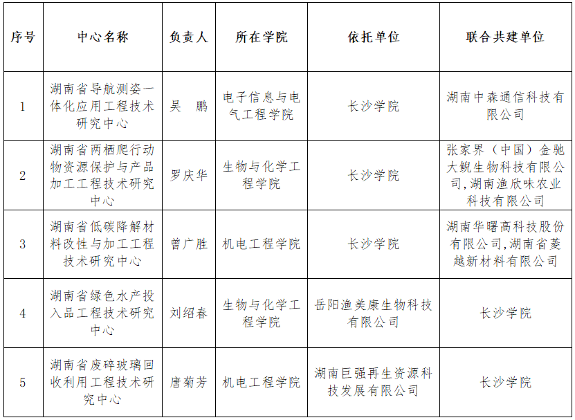 近日,湖南省科技厅公布了2023年度湖南省工程技术研究中心立项名单,我校新增5个湖南省工程技术研究中心,其中3个依托我校建设(湖南省导航测姿一体化应用工程技术研究中心、湖南省两栖爬行动物资源保护与产品加工工程技术研究中心、湖南省低碳降解材料改性与加工工程技术研究中心),2个为联合共建(湖南省绿色水产投入品工程技术研究中心、湖南省废碎玻璃回收利用工程技术研究中心)。