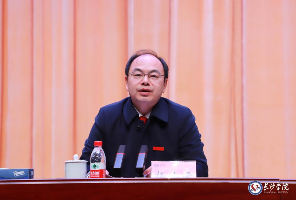 陈赤平强调,2024年是新中国成立75周年,是学校“升硕”决胜之年,是实现“十四五”规划目标任务关键之年。学校要坚持立德树人,推动人才培养质量实现新提升,不断提升思想政治教育工作实效,大力推进高质量教育教学体系建设,积极推动人才培养模式改革,着力促进学生全面健康成长;要坚持内涵发展,引领学校核心竞争力实现新跃升,不断强化高水平人才支撑,举全校之力决胜“升硕”,持续做优做强特色学科建设,大力推进有组织高水平科研,积极推进科技成果转化与服务地方;要坚持服务发展,推动条件保障水平取得新进步,推进治理体系与治理能力现代化,加强办学条件建设,加快推进校园基本建设,切实抓好安全稳定工作。大家要统一思想、明确方向、坚定信心、提振精神,尤其要以实干“大抓落实”,真抓实干、埋头苦干,确保各项目标任务落实落地,加快推动学校实现内涵式高质量发展。