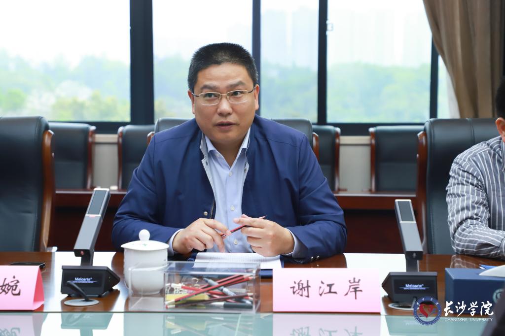 谢江岸介绍了湖南中勘北斗研究院有限公司的设计队伍、技术成果等方面的基本情况。他表示,此次与长沙学院的签约合作,是一次非常有价值和前景的创新探索,也是拓展整个全生态产业链、促进产学研深度融合的新里程,期待未来能和长沙学院共同探索创新合作模式,深化校企合作,实现产学共赢,实现学校社会效益和企业经济效益的有机统一,力争打造成为行业内的校企合作标杆示范,融合共建,共创未来。