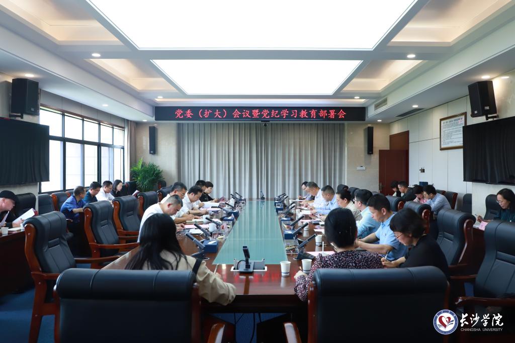 会议强调,开展好党纪学习教育,是今年党建工作的一项重要政治任务,是学校抓好高质量发展、以实际行动贯彻落实习近平总书记考察湖南时发表的重要讲话精神的重要举措。一是要深入学习领会习近平总书记重要讲话和重要指示精神以及中央、省委有关部署要求,把思想和行动统一到党中央决策部署上来,从政治高度深刻认识开展党纪学习教育的重要意义和实践要求。把开展党纪学习教育同落实党中央重大决策部署、推进学校各项工作紧密结合起来,把学习成果转化为推动学校事业高质量发展的实际成效。二是要准确把握开展党纪学习教育目标任务。要层层压实主体责任,在范围上全覆盖,推动学校各级党组织和领导班子从严抓好党的纪律建设,教育引导党员干部师生学纪、知纪、明纪、守纪。三是要高质量推进学校党纪学习教育各项工作。要把党纪学习教育融入日常、抓在经常,与校院两级理论学习中心组学习、“5·10”清廉校园主题活动月、干部教育培训等工作统筹安排。
