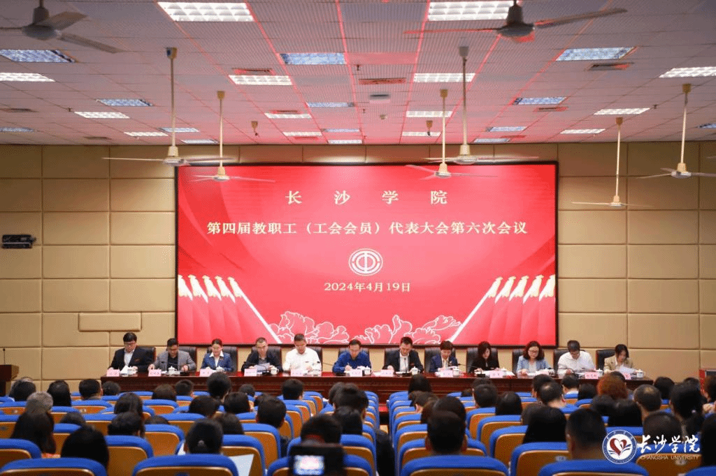 4月19日下午,长沙学院第四届教职工(工会会员)代表大会第六次会议在致远楼学术报告厅胜利召开。大会听取并审议通过了《长沙学院工作报告》《长沙学院财务工作报告》及《长沙学院2023年财务预算执行情况及2024年财务预算建议》《长沙学院工会工作报告》。全体在校校领导出席会议。会议由党委副书记刘寒波主持。