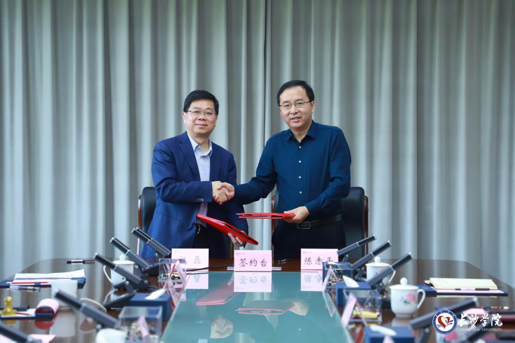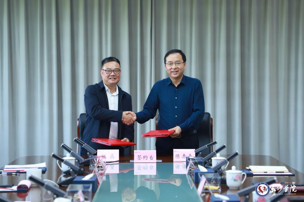 (校长陈赤平与长沙职业技术学院党委副书记、校长祝磊代表两校签订联合培养协议)