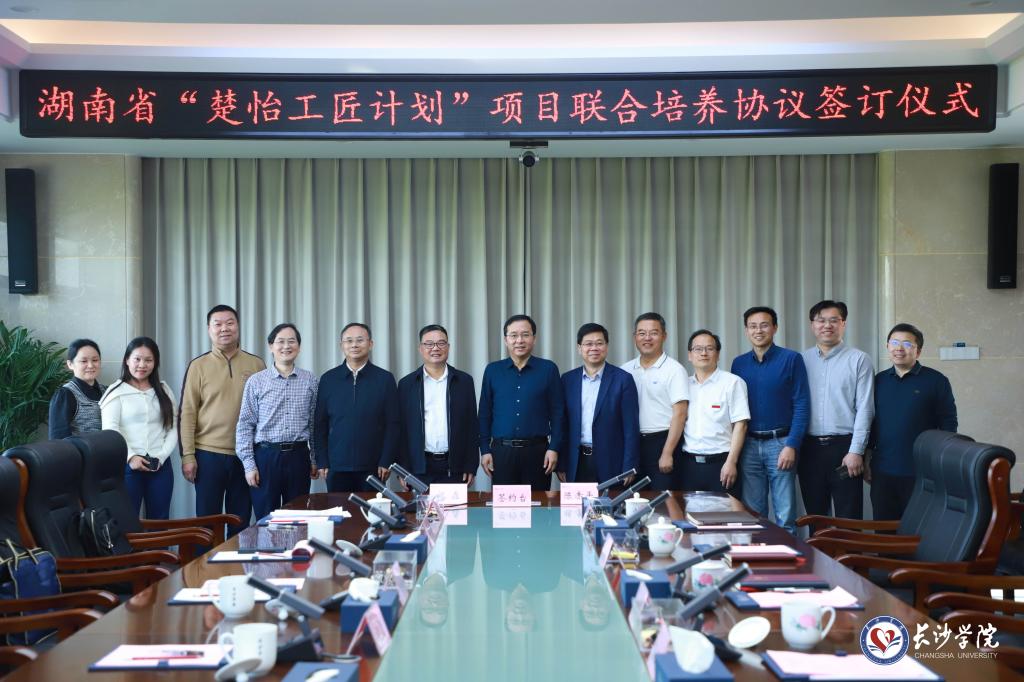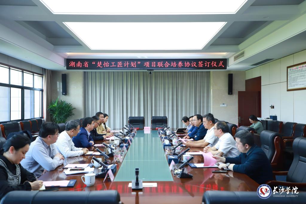 4月23日下午,长沙学院与长沙职业技术学院、湖南信息职业技术学院“楚怡工匠计划”项目联合培养协议签订仪式在长盛楼4001室举行。校长陈赤平,长沙职业技术学院党委副书记、校长祝磊,党委委员、副校长肖新田,湖南信息职业技术学院党委副书记、校长朱焕桃等出席签约仪式。仪式由党委委员、副校长张世英主持。
