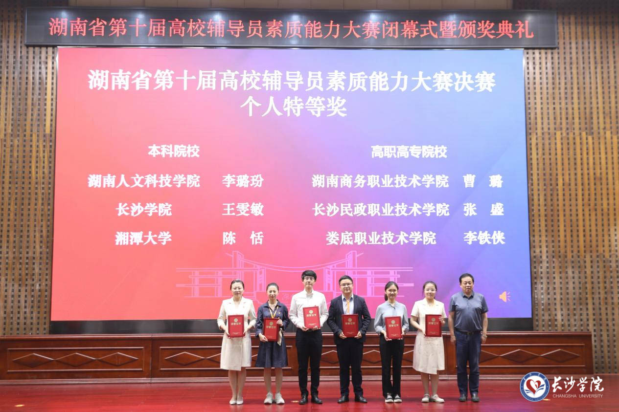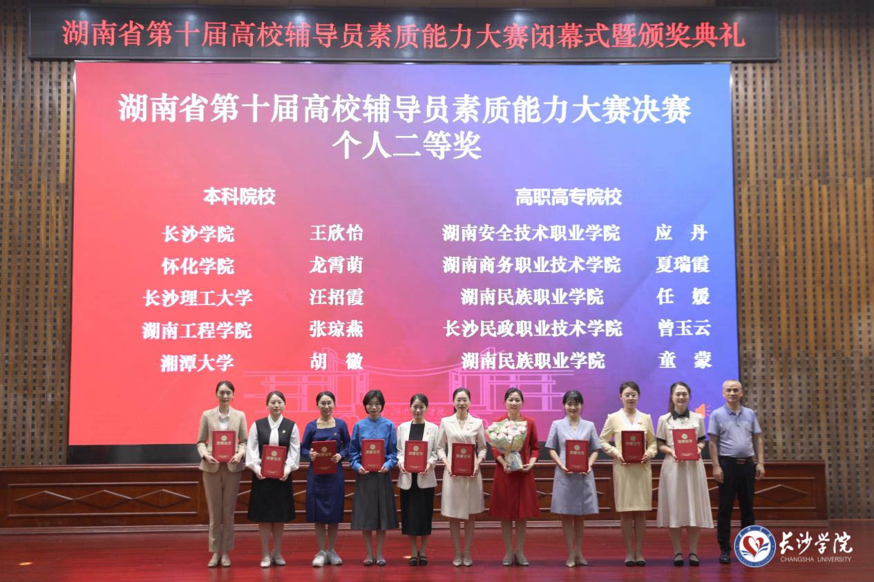 5月30日至31日,由中共湖南省委教育工委、湖南省教育厅主办的湖南省第十届高校辅导员素质能力大赛决赛在湖南工程学院落下帷幕。我校马栏山新媒体学院辅导员王雯敏获特等奖,计算机科学与工程学院辅导员王欣怡获二等奖,学校获本科院校组团体季军,是我校在该项赛事中取得的最好成绩。