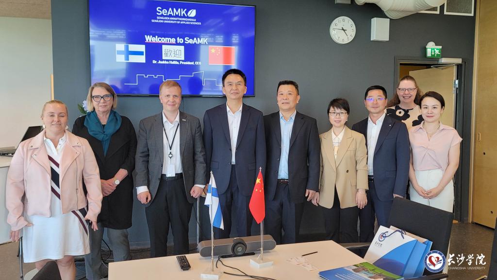 刘寒波一行还访问了塞纳约基应用科技大学(SeAMK),与校长Jaakko Hallila、全球教育服务中心负责人Marjo Arola等进行会谈,参观了该校智能制造机器人实验室、工业分析计算机实验室、全媒体实训中心等。SeAMK位于芬兰南博滕省,是一所联合教育、研究、开发和创新的综合性高等教育机构。刘寒波表示,SeAMK的农业食品工程、自动化工程、工商管理、医疗保健等专业与我校学科专业契合度较高,在学生互换、科研合作等方面存在较好的合作基础,长大正在加快国际交流合作步伐,高度重视与SeAMK的交流,希望建立长期密切合作关系。Jaakko Hallila表示,SeAMK愿意和长沙学院建立全方位的合作关系,在师生访学、科研合作、文化交流等方面开展务实合作。