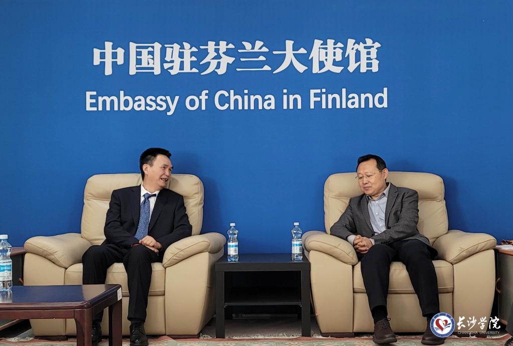 在芬兰,刘寒波会见了中国驻芬兰大使馆教育参赞李保荣和教育组负责人孙洪志,并介绍了长沙学院的办学情况,以及此次出访芬兰高校和科研机构的有关情况。李保荣表示,将积极推动中国与芬兰在高等教育和科技领域的交流合作,在海外高端人才引进、合作科研等方面为长沙学院的开放办学提供积极支持。