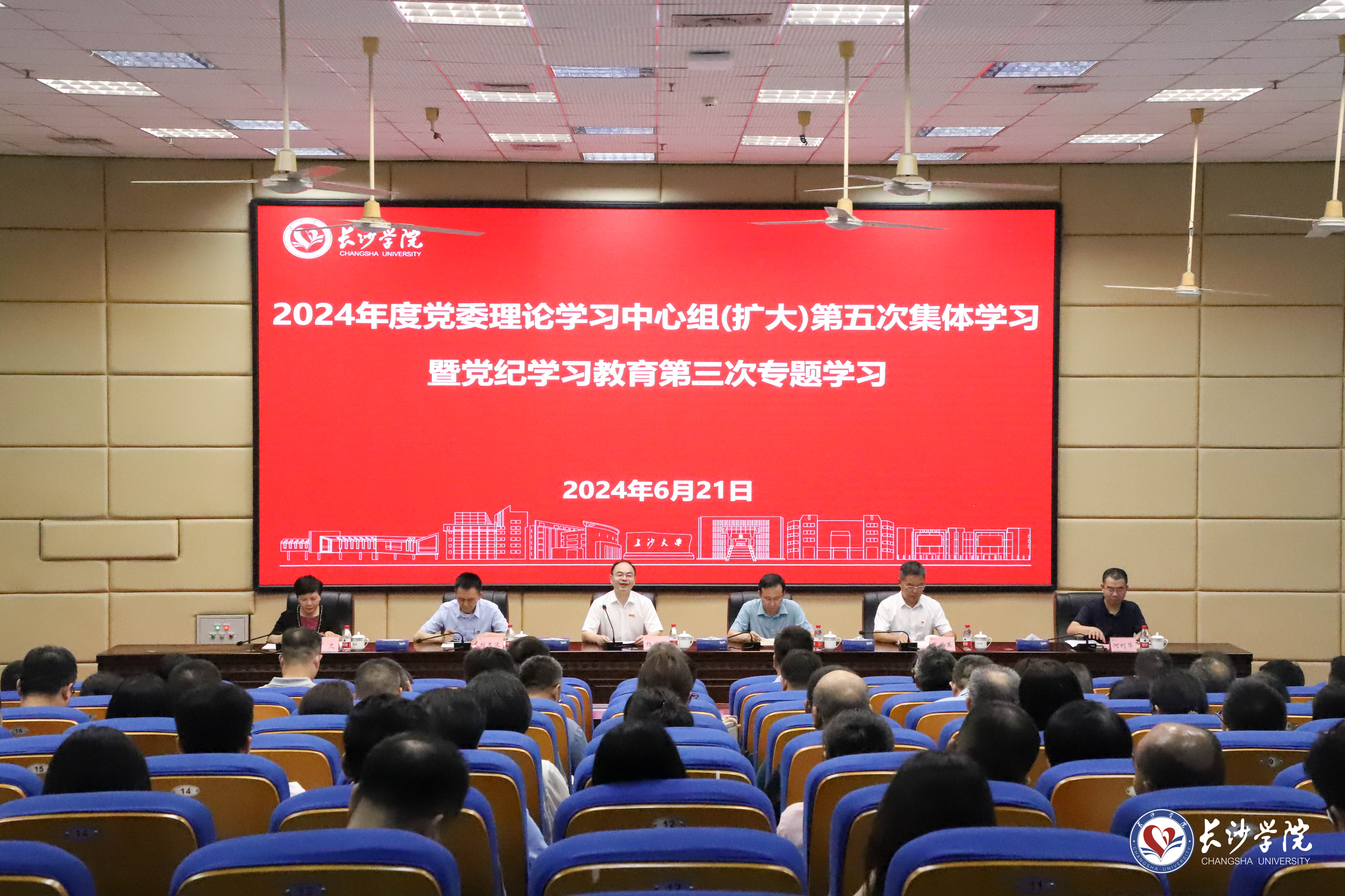 6月21日下午,学校在致远楼学术报告厅举行2024年度党委理论学习中心组(扩大)第五次集体学习暨党纪学习教育第三次专题学习,深入学习贯彻习近平总书记关于全面加强党的纪律建设重要论述精神,根据中央和省委的部署要求,教育引导全校各级党组织和党员干部自觉学纪、知纪、明纪、守纪,不断增强政治定力、纪律定力、道德定力、抵腐定力,切实推动党纪学习教育走深走实、见行见效。党委书记杨小云主持会议并讲话。校长陈赤平及全体校领导、全体中层干部参加学习。