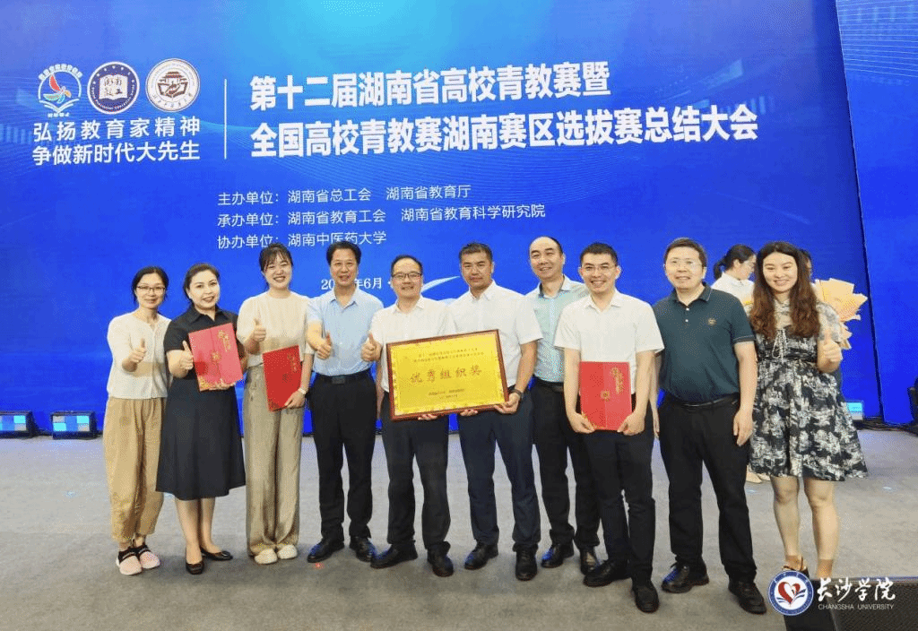 6月24日,由湖南省总工会、湖南省教育厅联合主办的第十二届湖南省高校青教赛暨全国高校青教赛湖南赛区选拔赛总结大会在湖南中医药大学落下帷幕,我校教师再获佳绩:马栏山新媒体学院梁湘梓教师(团队)荣获文科组一等奖,土木工程学院艾丽菲拉·艾尔肯教师(团队)、机电工程学院吴垚教师(团队)荣获工科组一等奖,马克思主义学院支仕泽教师(团队)荣获思想政治课专项组二等奖,学校荣获优秀组织奖。三位一等奖获奖教师还被授予“湖南省教学能手”荣誉称号。