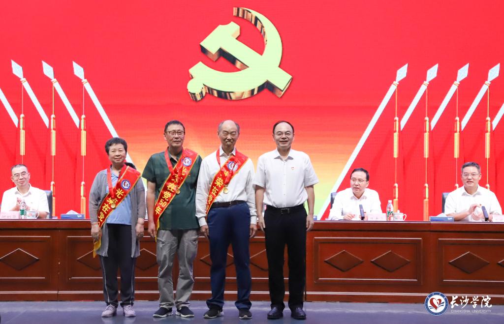 与会校领导为老党员颁发了“光荣在党50年”纪念章,为获评全省高校党建工作标杆院系、样板支部等省级和校级荣誉的集体和个人颁发了证书。“光荣在党50年”纪念章获得者代表谭坚,优秀共产党员代表、马克思主义学院教师党员向伟,优秀党务工作者、材料与环境工程学院教工党支部书记李晋波分别上台作交流发言,分享了自己感悟体会。