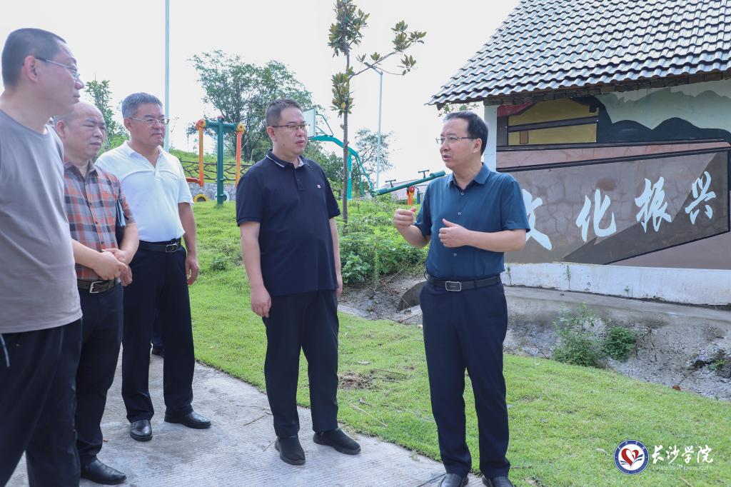 陈赤平首先深入驻村工作队办公场所,详细了解驻村队员工作和生活情况,并与驻村队员、孝坪镇及中溪村主要负责人进行座谈交流。陈赤平对驻村工作队队长朱智宇等三位同志克服困难、耐心细致有效地开展乡村振兴帮扶工作给予了肯定,对未来帮扶工作的开展提出了建议。他指出,目前我们正处于巩固拓展脱贫攻坚成果同乡村振兴有效衔接工作阶段,任务比以往更重。在后续的帮扶工作中,要积极进取、开拓创新,精准对接符合村镇资源环境特点的产业项目,针对村镇实际,强化乡村社会治理,有效解决农户的急难愁盼问题;要加强合作、整合资源,积极发挥长沙学院教育资源优势,动员一切能动员的力量,参与到乡村振兴工作中来;要强化管理、提高效率,优化帮扶举措,提高帮扶成效,打造校地合作的成功典型。