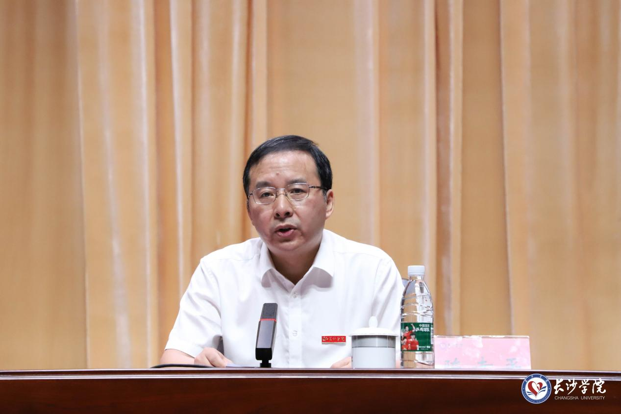 陈赤平强调,下半年,全校上下要进一步统一思想、凝心聚力、实干担当,积极开展迎接新一轮本科教育教学审核评估工作,做精以评促建,做好以评促改,做强以评促管,做实以评促强;要扎实推进第二批硕士学位建设点建设工作,持续做优做强特色学科建设;要以服务师生为宗旨,持续提高服务支撑保障水平,积极推进“智慧长大”建设,有力有序做好基础设施、教学科研条件和学生生活条件等改善工作,践行“大安全观”,建设更高水平平安校园。全校上下要强化服务“国之大者、省之大计、校之大事”的目标导向,强化担当作为的责任意识,强化能为善为的本领能力,以实干实绩推动学校高质量发展任务落地见效。
