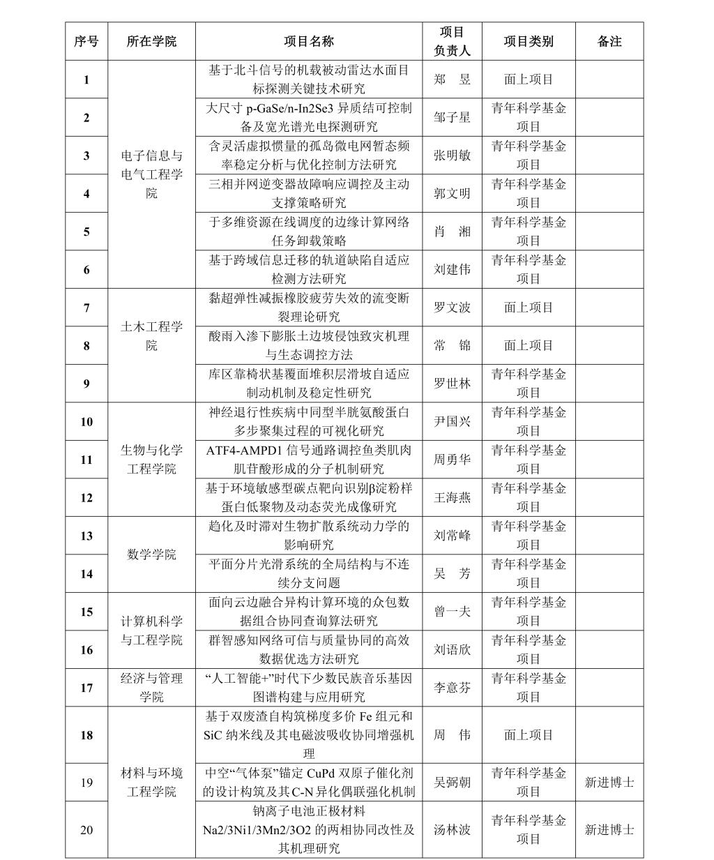 近日,国家自然科学基金委员会公布了2024年度集中接收项目评审结果,我校以第一单位获批国家自科基金项目18项,其中面上项目4项、青年项目14项,另有2位新进博士获批青年项目2项。