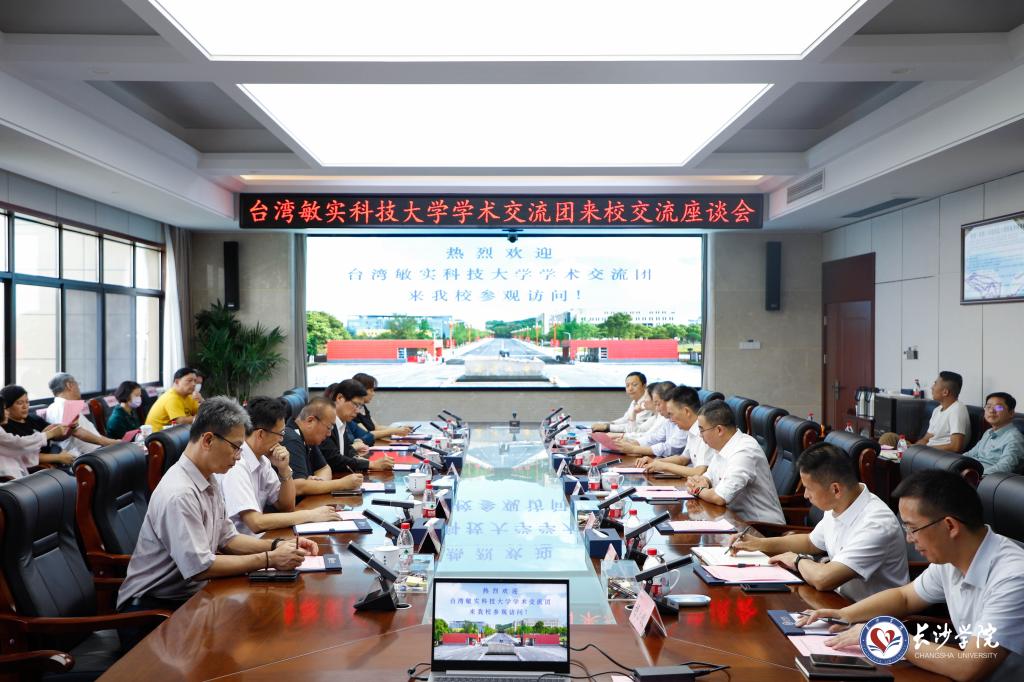 台湾敏实科技大学副校长陈建中、周惠珍教授、赖东佑教授、总务长锺美惠等教职人员,长沙市台办对台交流处蒋竹青,学校党政办、组织统战部、宣传部、教务处、科技处、国际合作与交流处、相关二级学院主要负责人参加交流座谈。