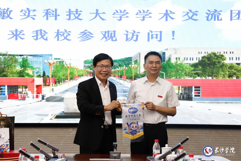 10月10日下午,台湾中华友好城市交流协会执行会长陈政宽、台湾敏实科技大学校长曾信超率台湾敏实科技大学学术交流团一行40余人来校开展参访交流。校党委副书记刘寒波,长沙市台办一级调研员袁湘鄂出席交流座谈。座谈会由党委委员、副校长何利华主持。