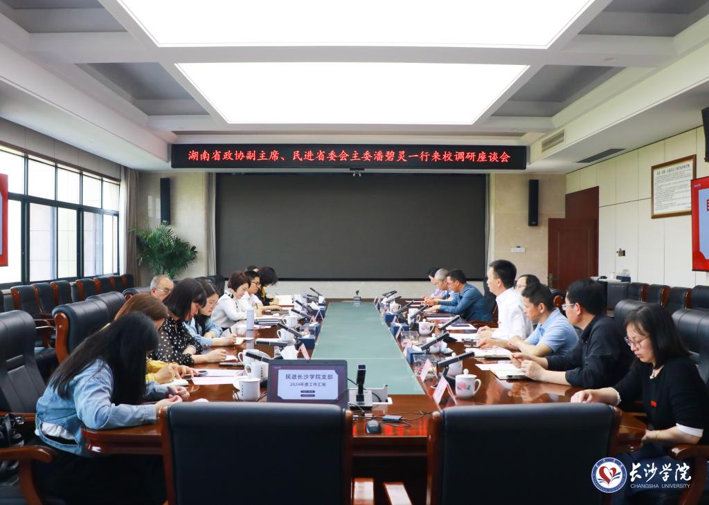 潘碧灵指出,长沙学院近年来在提升综合实力、办学水平及社会影响等方面都取得了很好的成绩,希望学校进一步创造条件,加强民主党派基层组织建设,做好党外干部尤其是年轻干部的发现、培养与使用;要进一步深化校地融合,充分发挥高校人才智力优势,为地方经济社会建设提供有力人才支撑;要进一步整合校内外资源、发挥学科专业优势,不断凸显文化和科技融合特色。