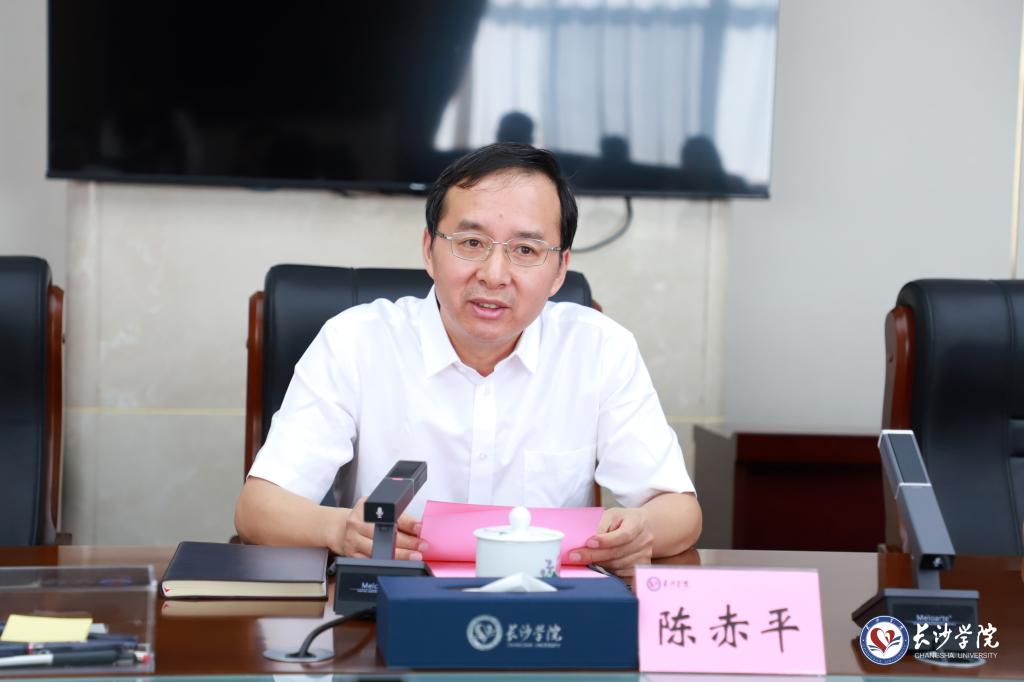 陈赤平对伍光强一行的到来表示欢迎,并介绍了学校的基本情况。他表示,此前两校签订了“楚怡工匠计划”项目联合培养协议,联合开展本科层次高素质技术技能人才培养,为两校之间进一步深化交流合作提供了重要契机,展现了两校之间的深厚友谊和广阔交流合作空间。希望两校充分发挥各自优势,深化多领域合作,共同推动学校高质量发展,为省市提供更有力的教育人才科技支撑。