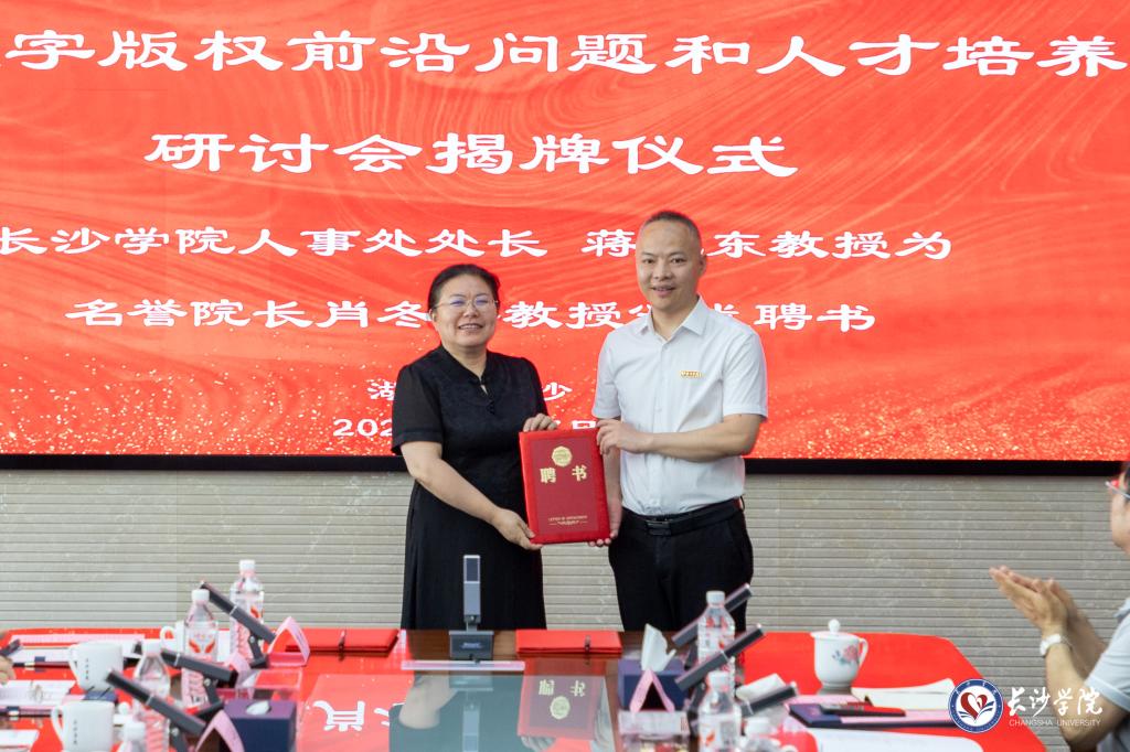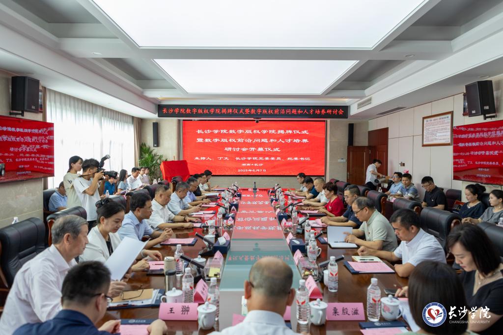 揭牌仪式后,长沙学院数字版权学院名誉院长、湘潭大学知识产权学院院长肖冬梅教授主持召开了数字版权前沿问题与人才培养论证会,来自中南大学、湖南大学等高校的版权法学者,市中级人民法院、马栏山知识产权法庭等司法实务界代表以及中广天择、明和集团等行业企业专家共同深入探讨了数字版权领域的热点、难点问题,为数字版权学科专业的发展方向、人才培养等提供了诸多有益建议。