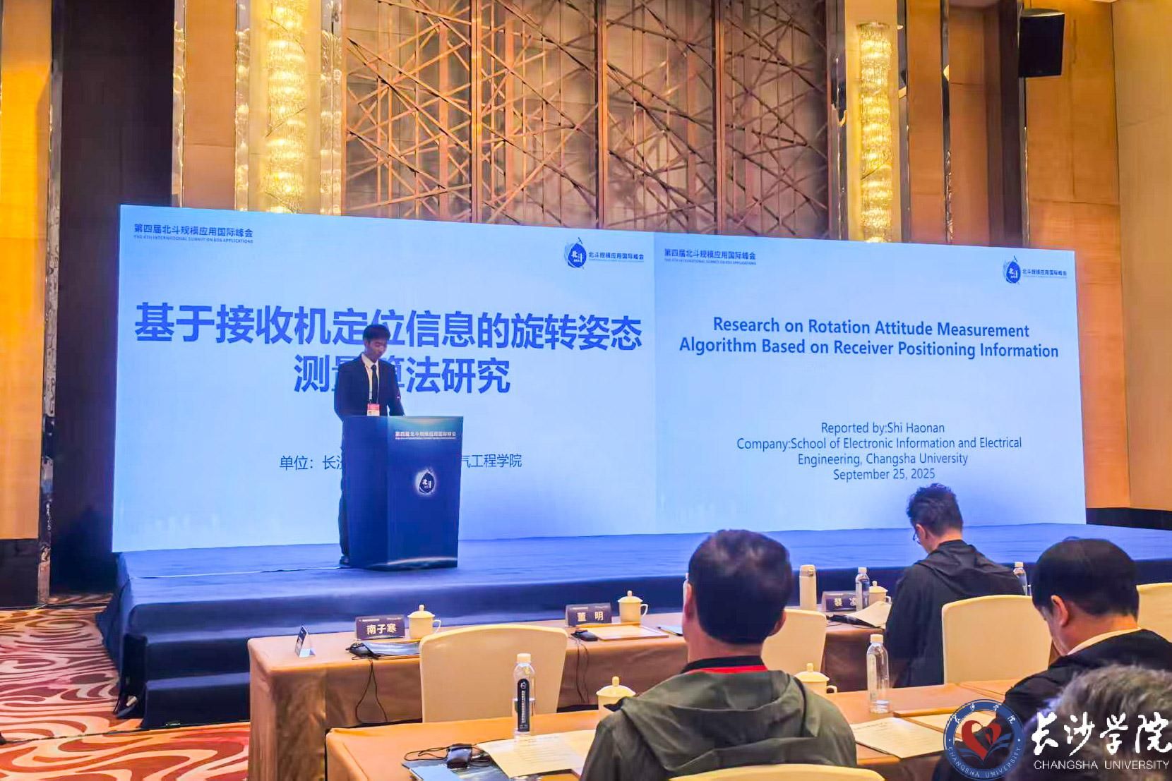 近日,第四届北斗规模应用国际峰会在湖南株洲举行。我校电子信息与电气工程学院通信工程专业2022级石浩楠同学在吴鹏、冯璐老师指导下完成的学术论文《基于接收机定位信息的旋转姿态测量算法研究》被大会录用(EI检索),并受邀在“综合PNT体系与新技术”分论坛上作研究分享报告。