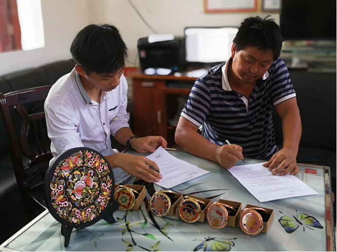 7月16日下午,刚到大红村的“景逸堂”项目团队成员就直奔村部,与大红村的“当家人”对接洽谈,充分了解当地农村经济发展需求、留守劳动力情况、贫困人口数量、传统手工艺发展情况,并与大红村村委签订合作协议。