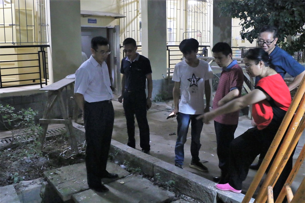 周明侠副校长一行仔细查看了勤思园区的活动广场、园内道路、路灯、消防设施、给排水等室外维修改造工程的完成情况,验收了相关工程并针对存在的问题提出了整改意见。随后,周明侠副校长进入勤思园区的每一栋宿舍内,仔细查看房间的内墙、阳台、楼梯间、门窗、公共浴卫间、电器及照明等设施,记录了每一栋宿舍的开园准备情况,并叮嘱相关部门做好新学期的开园准备,以饱满的热情迎接返校学生。
