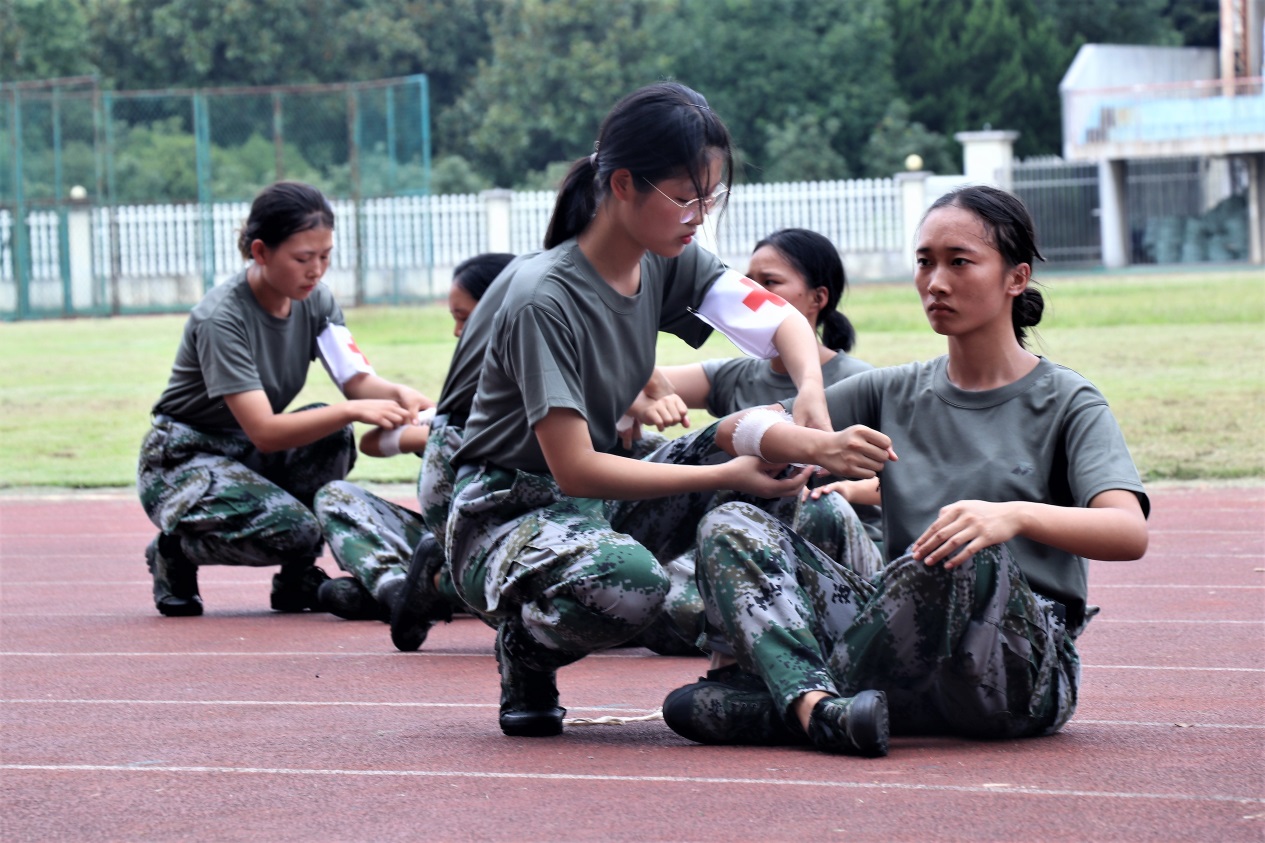 “一,二,三,四。”迈着整齐的步伐,喊着雄壮的口号,我校军训自训教员分成两队,向大家作了齐步走、正步走、擒敌拳、刺杀操,心肺复苏和战地包扎救护以及单兵战术等内容的汇报表演。