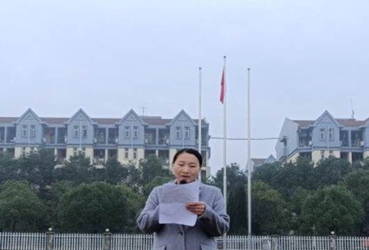 在慷慨激昂的国歌声中,全体师生庄严地注视国旗冉冉升起。2018级法学4班学生代表梁国庆以《肩负时代重任,牢记复兴使命》为主题进行国旗下讲话。他号召全院学生树立远大理想、热爱伟大祖国、牢记复兴使命,肩负时代重任,脚踏实地努力学习,为将来的法制建设打下基础。
