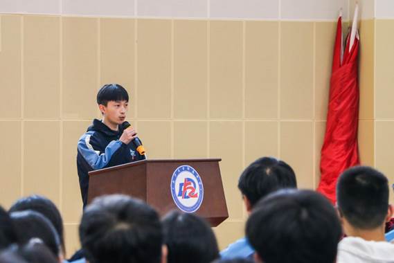 K1802班的肖当熠同学表达了对学校、老师和家长的感恩之情,他用青春的名义保证,要用自己的实际行动和优异成绩向学校老师汇报。