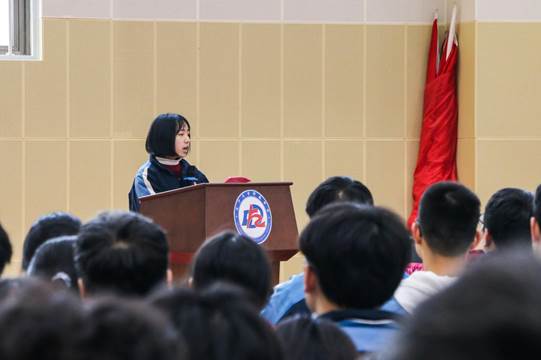 高三K1801班的邓思林同学代表全体同学表示在最后100天中一定会充满信心,带着爱心感受生活,用顽强的毅力迎接高考。