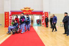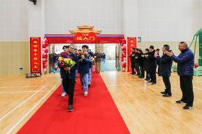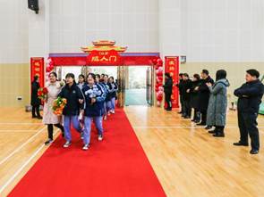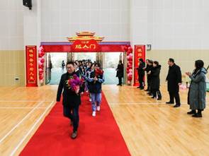 学生和班主任一起手捧鲜花,依次穿过成人门,迎接全新的自己。