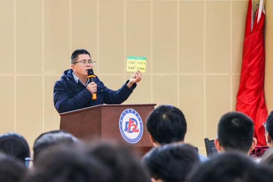 教务处朱章桃主任的讲话风趣幽默,他用数学的方式阐述了努力与懈怠产生巨大差异的结果来鼓励高三学生面对高考要努力奋斗,并充满信心。