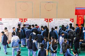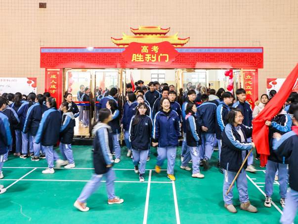 全体师生伴随着音乐跨过高考胜利门,在签字板上庄重地签上自己的姓名,作为高考百日冲刺的承诺并悬挂于教室,时刻激励同学们奋勇前进。
