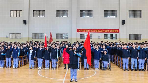 3月3日上午,长大附中高三全体师生在学校修葺一新的体育馆隆重召开“2021届高三学子成人礼暨高考百日誓师大会”。校长陆佳宾、党委书记刘孟佳、副校长周晖、纪委书记李继芳及全体行政领导、高三全体教师共同见证了同学们成长路上的里程碑时刻。活动分为三个环节,由高三年级组长朱红兵主持。