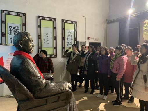 参观完毕后,在徐特立的铜像前,二支部全体党员整齐列队,庄严宣誓,重温入党誓词。