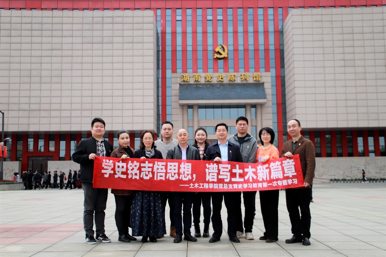 26日上午,土木工程学院党总支理论学习中心组围绕“学史明理”主题开展党史学习教育第一次专题学习。中心组全体成员深入学习贯彻习近平总书记在党史学习教育动员大会上的重要讲话精神,重温习近平总书记考察湖南重要讲话精神,并乘车来到湖南省党史陈列馆接受党史学习教育,为学院各党支部和师生党员作出示范,推动全院党史学习教育深入开展。