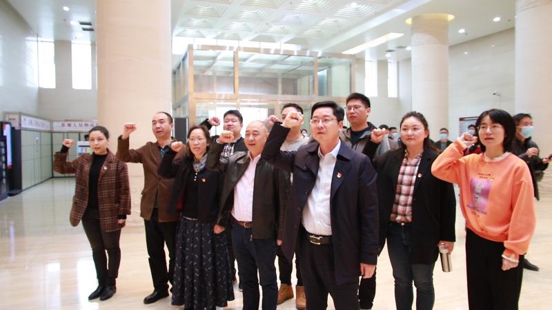 在湖南党史陈列馆一楼展厅,全体人员庄严重温入党誓词,学院党总支书记徐远超领誓,铿锵有力的宣誓声催人奋进、激荡人心。土木学院党总支理论学习中心组成员随后在湖南党史陈列馆留下合影。