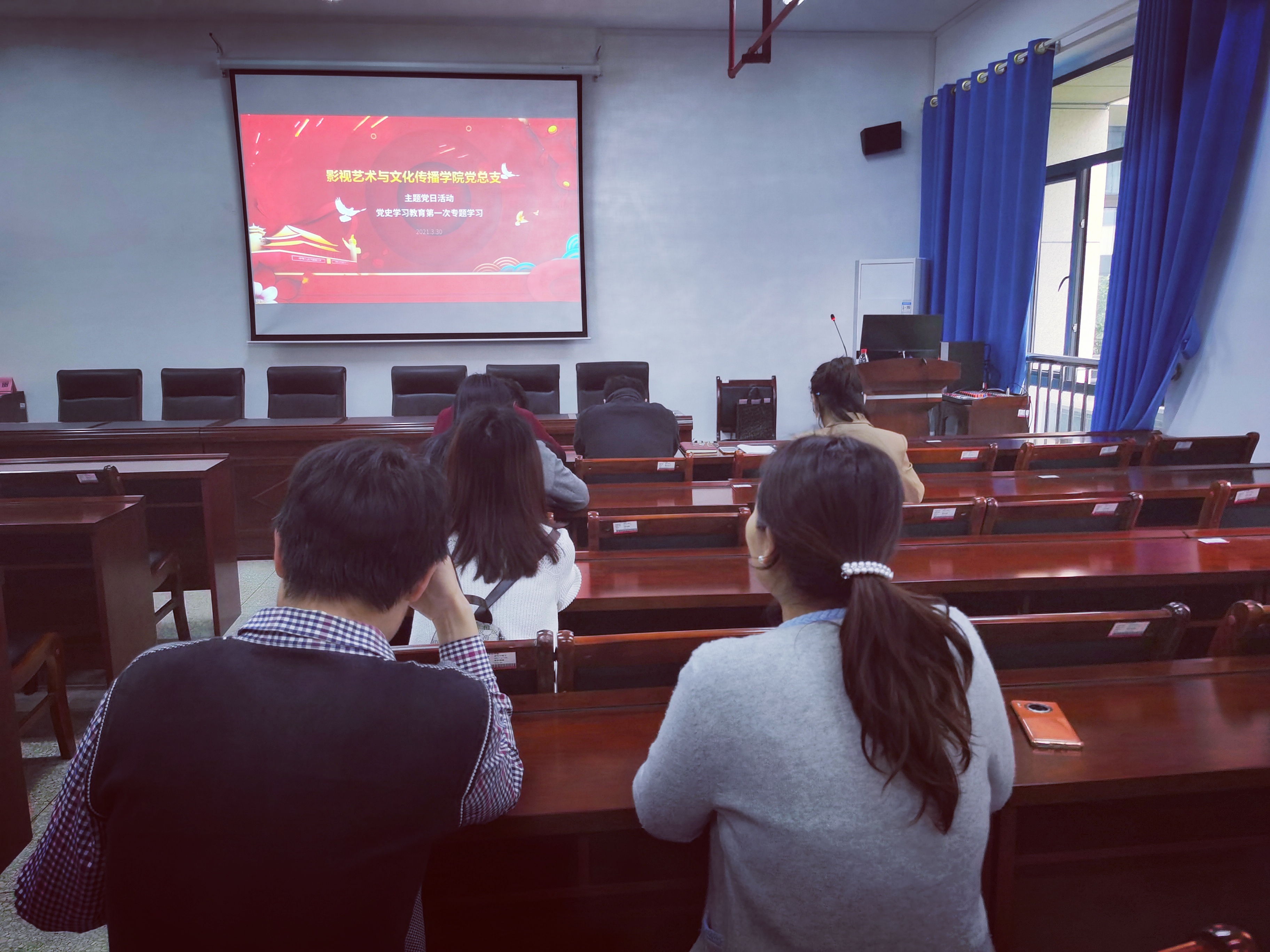 在高校,党史如何学?当然是从读书开始,从上课开始,从日常的学习教学科研生活开始。2021年3月30日下午2点,影传学院教工二支部在力行楼A219开展党史学习教育第一次专题学习,活动由支部书记梁湘梓主持,全体党员参与。