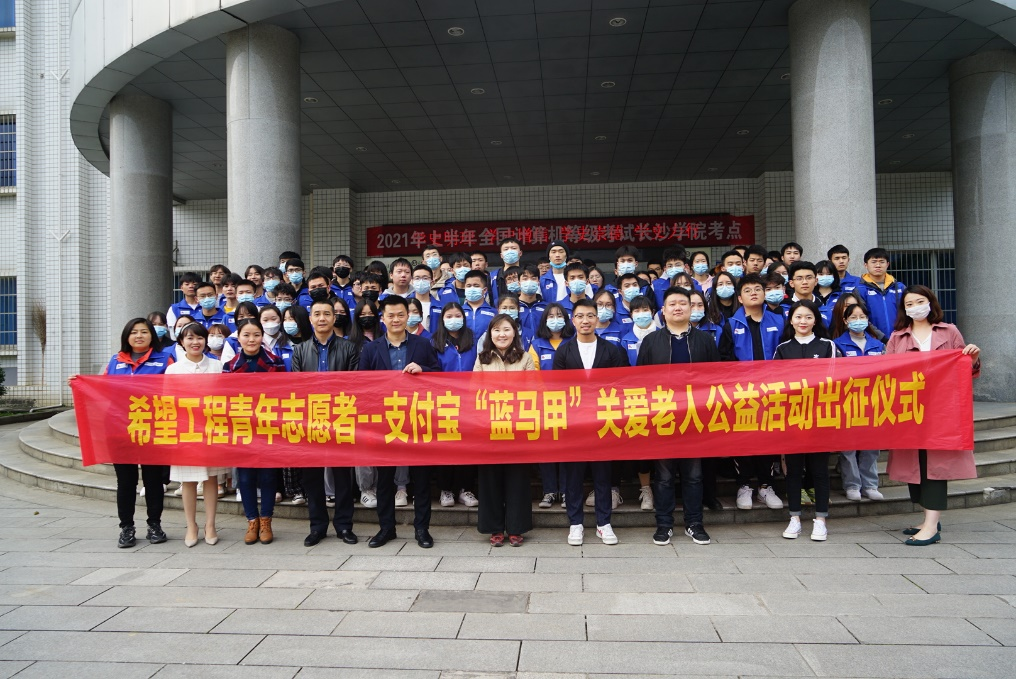4月10日,一百多名土木工程学院党员、预备党员、入党积极分子组成的“蓝马甲”志愿者大军在团总支书记和学生三支部书记李晗的带领下,冒着大雨穿行在长沙市的50余个社区里,开展 “蓝马甲”关爱老人公益活动,用实际行动来践行党史学习教育,为群众办实事。积极开展关爱老年人服务,手把手教老年人使用智能设备,包括:手机支付、健康码使用、医院挂号等,帮助老年人融入数字生活,方便老年人日常衣食住行。